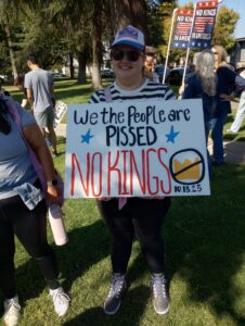 A beautiful, warm Saturday was the attitude today for the second round of anti-T-Rump/pro-democracy “No Kings” rally here in my local town, Merced, set near the center of California’s Central Valley, and once again an emotional treat to be involved with a crowd calling for America to remain America.